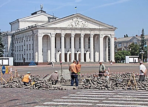 Як повідомили в міському управлінні житлово-комунального господарства, вартість робіт складає 210 тис. грн. Вони фінансуються з цільового фонду розвитку інженерно-транспортної та соціальної інфраструктури міста. Замовником виступає управління ЖКГ, а роботи виконує ДП «УкрСіверБуд» ЗАТ «ДСК». Площа, на якій буде «підправлено подушку» і вирівняно поверхню, складає 1,4 тис. квадратних метрів, що приблизно 12% всієї площі. До Дня Незалежності всі роботи будуть виконані, й святкові заходи відбудуться на оновленому майдані.