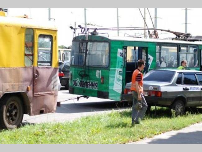 По невыясненным причинам, перед оживлённым перекрёстком, произошла поломка в системе управления троллейбусом, что привело к отказу в системе тормозов и возгоранию в кабине водителя.