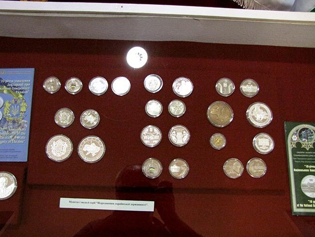 На виставці розміщено експонати, присвячені Івану Плющу, Левку Лук’яненку, Леоніду Кучмі, українським спортсменкам Валентині Цербе, Олені Костевич. Окремі стенди присвячені такому невід’ємному атрибуту державного суверенітету як національна валюта — українській гривні.