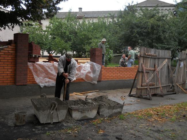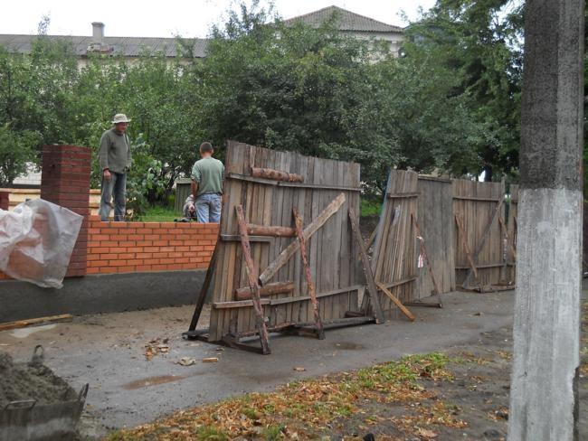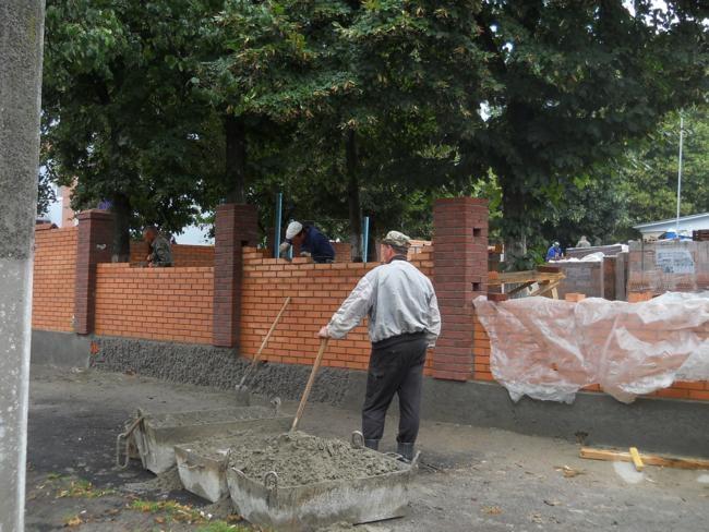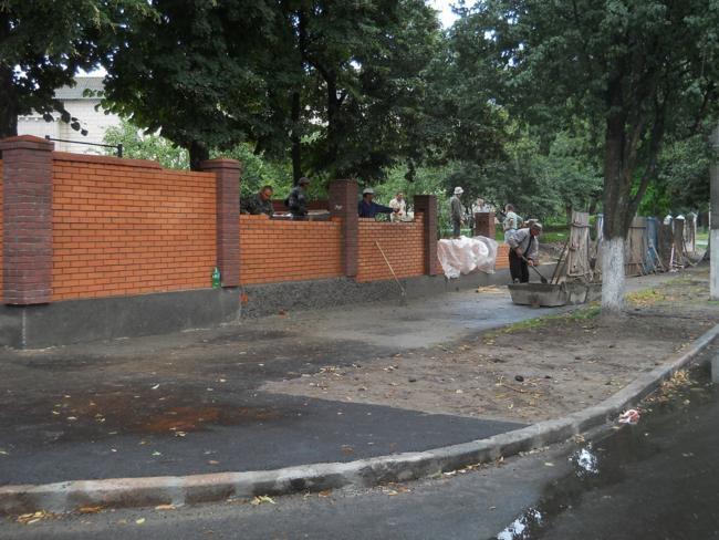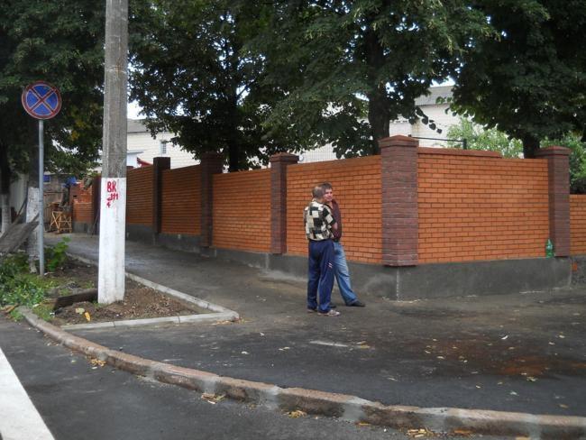 Рядом с заборчиком, уже выстроена значительная часть нового ограждения из еврокирпича.