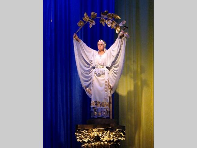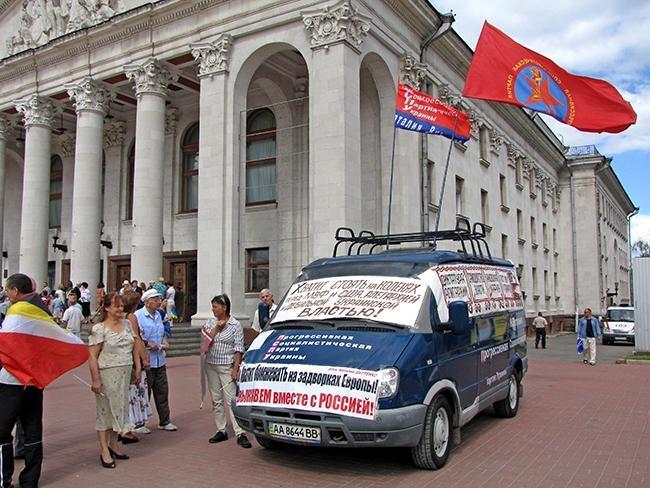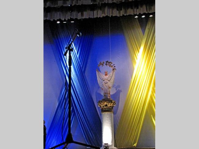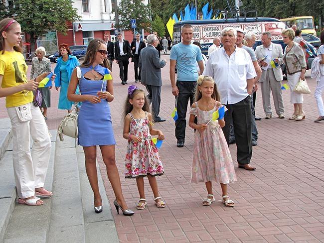 Не преминули возможностью пропиариться и политические силы. Прямо на тротуаре у драмтеатра стоит агитационная машина лидера «Прогрессивных социалистов» Наталии Витренко, группа «Молодых регионов» активно раздает прохожим украинские флажки. В зале драмтеатра в этот день – аншлаг.