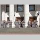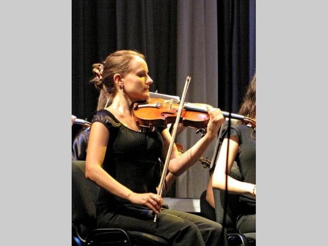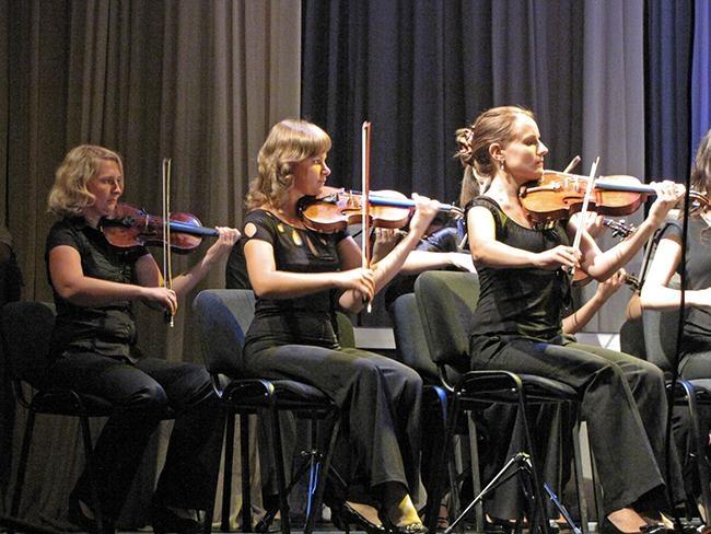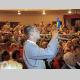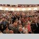 На подходе к драмтеатру празднично и многолюдно, играет духовой оркестр, горожане поодиночке и группами заполняют зал театра.