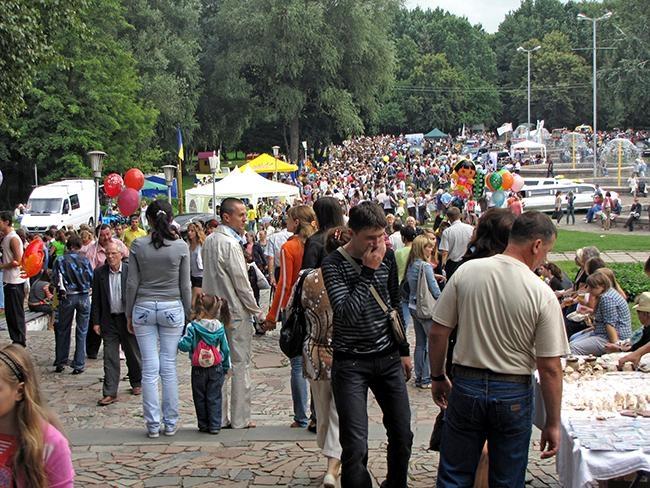 Мрачная погода и мелкий дождь, который начался утром, сжалились над горожанами, и выглянуло солнце. Тысячи черниговчан и гостей города, семьями и с друзьями направились в Центральный парк культуры и отдыха.