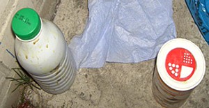 Під час здійснення огляду транспортного засобу спільною спеціальною прикордонно-митною оглядовою групою за допомогою службового собаки Мухтара під переднім сидінням пасажира в салоні автомобіля було виявлено пластикову пляшку ємністю 1 л з рідиною білого кольору (розчин коноплі з молоком) – зі слів водія.