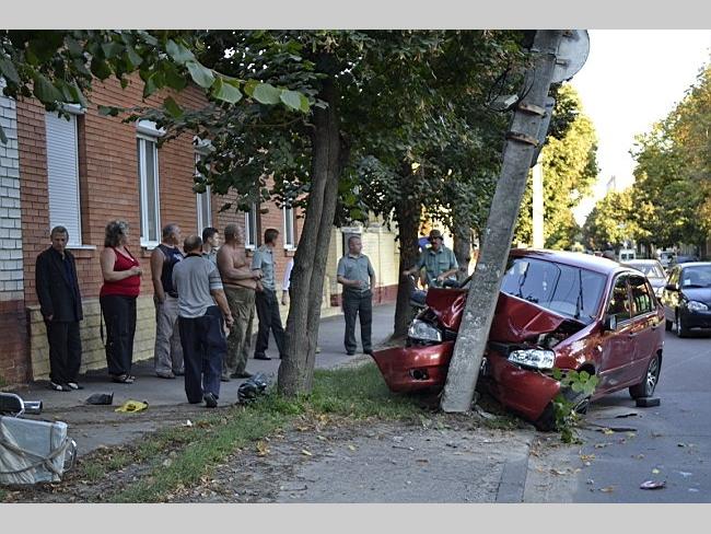 Сегодня, 1 сентября, около 18.20 вечера по улице Молодчего, 19, что возле средней школы №9 произошло ДТП с участием двух автомобилей и скутера. По словам очевидцев черная «ауди» пошла на обгон скутера, тем самым поджав его к правой стороне дороги. В это время в сторону Пяти углов от Горсада двигался автомобиль Лада, красного цвета. В результате удара скутер отлетел на тротуар, а водитель Лады врезался в столб электропередач. Пассажиров Лады – молодую женщину с дочерью забрали врачи-стоматологи, в частный кабинет, который находился тут же. Водителя скутера, около 50 лет забрала «скорая». Водитель Лады не пострадал.