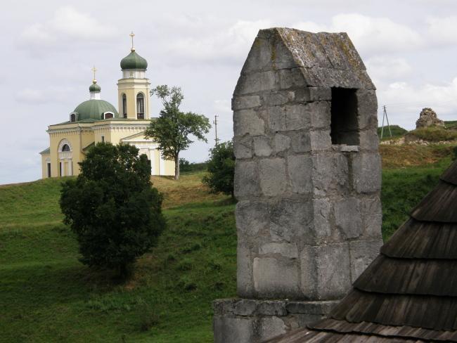 Справа от дворца – небольшая замковая церковь с белокаменными обрамлениями стрельчатых готических окон, которые одновременно служили еще и бойницами. Практически всю западную стену храма украшает огромный резной портал. На территории крепости сохранилась также церковь Александра Невского, построенная в 1835 г. для солдатов российского гарнизона.