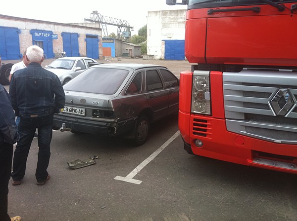 Вчера, около 17.00 по ул. Шевченко, 162-А, во дворе МРЭО, водитель фуры, паркуясь, задел стоящий рядом "Ford", в результате чего у "Forda" был отбит бампер, заднее крыло и задний фонарь. Водители решили не вызывать ГАИ, и уточнив по телефону стоимость поломки, решили дело мирным путём.
