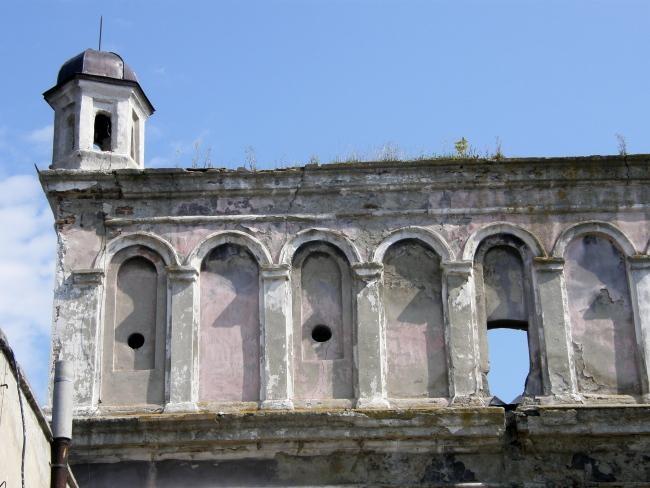 Синагога в Жовкве, пожалуй, самая живописная из всех, которые приходилось видеть. Возведена она в конце XVII века и объединяет черты сакральной, гражданской и оборонной архитектуры позднего ренессанса и барокко. Особенную нарядность придают синагоге глухая аркада и декоративный гребень с ажурными башенками по углам.