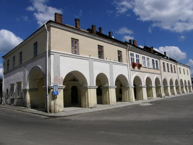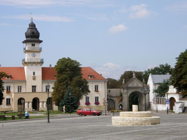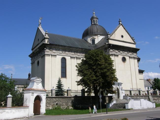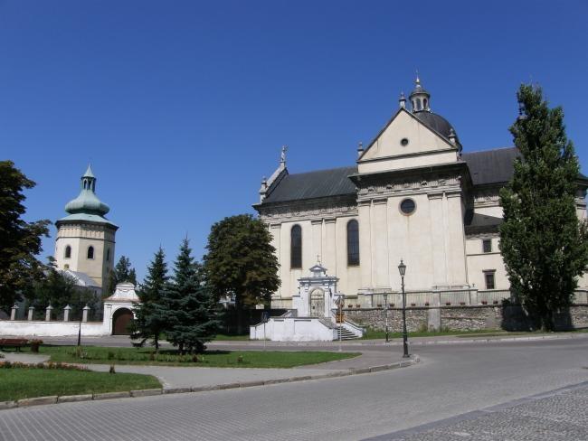 Главная достопримечательность Рыночной площади – кафедральный костел Св.Лаврентия. Ровесник города, храм стал некрополем для Жолкевских, Даниловичей и Собесских, поэтому его еще называют “маленьким Вавелем”. Необычайно живописна и оригинальна колокольня собора, переделанная из замковой башни, о чем говорят три яруса бойниц. А еще это местная «Пизанская башня», так как колокольня слегка наклонена.