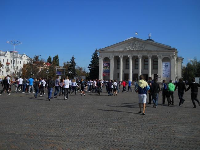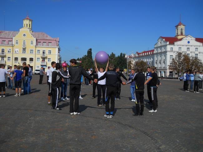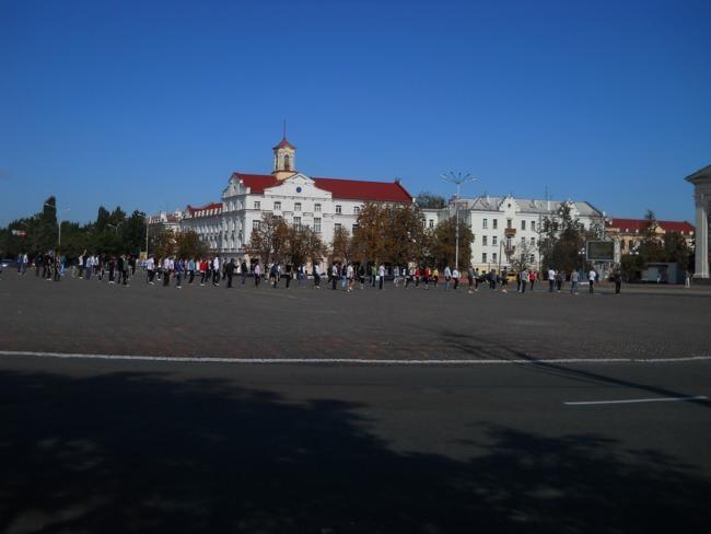 Уже в пятницу, 14-го сентября, на площадь под звуки марша организованными стройными рядами вышли студенты факультета физвоспитания Черниговского национального педагогического университета имени Т. Г. Шевченко.