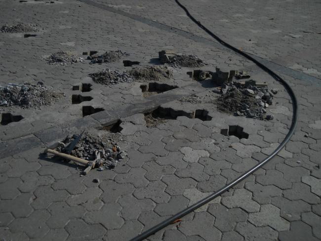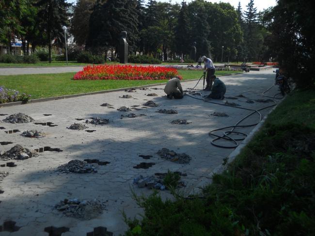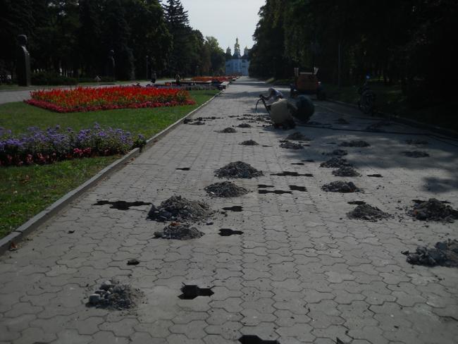 В это же время с Аллеи Героев тоже доносилась музыка – музыка труда и отбойных молотков, с помощью которых рабочие готовили покрытие Аллеи к «штопке» и чистке.