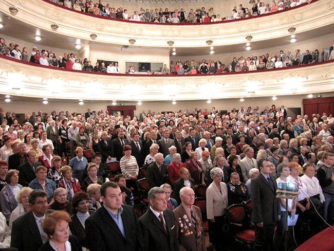 Урочистості, які розпочались зранку 21 вересня з нагоди 68-ї річниці визволення м. Чернігова від фашистських загарбників, продовжились в обласному академічному українському музично-драматичному театрі ім. Т. Г. Шевченка.