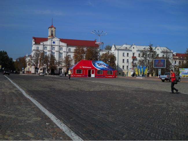 Красная площадь тоже готовится к празднику. Уже смонтирована «двухэтажная» сцена, поставлены яркие палатки. Теперь дело за малым – подарить черниговцам 24-го сентября настоящее праздничное утро, день и вечер.
