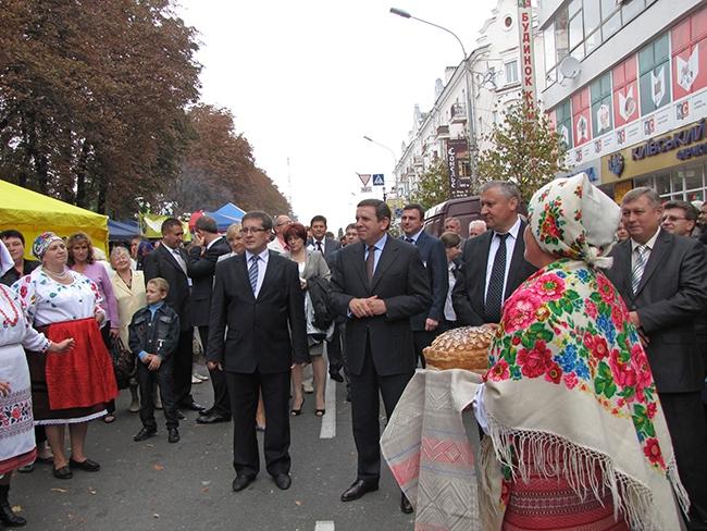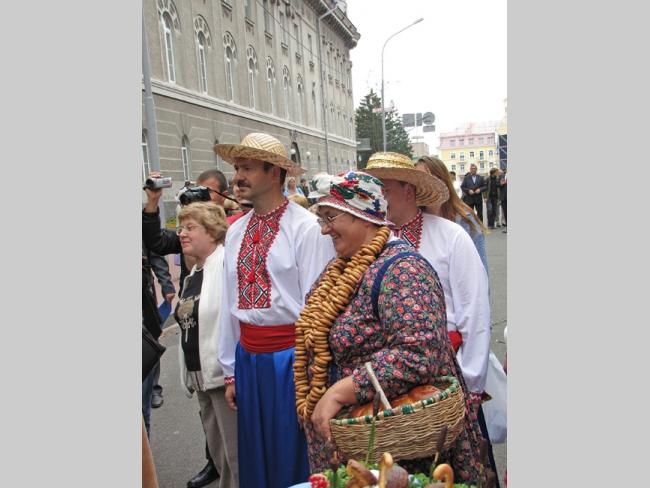 Традиционными караваями встречали участники ярмарки областных и городских руководителей, которые по достоинству оценили продукцию, предложенную производителями. Участники ярмарки, в национальной украинской одежде, исполняли народные песни и пляски, и даже разыгрывали мини-спектакли, привлекая тем самым внимание посетителей.