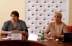 Вікторія Захожа (зліва) та Світлана Горна (праворуч) під час засідання прес-клубу