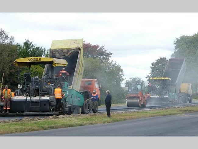 Між Черніговом і Ріпками робітники “розкатують” новий шар асфальту
