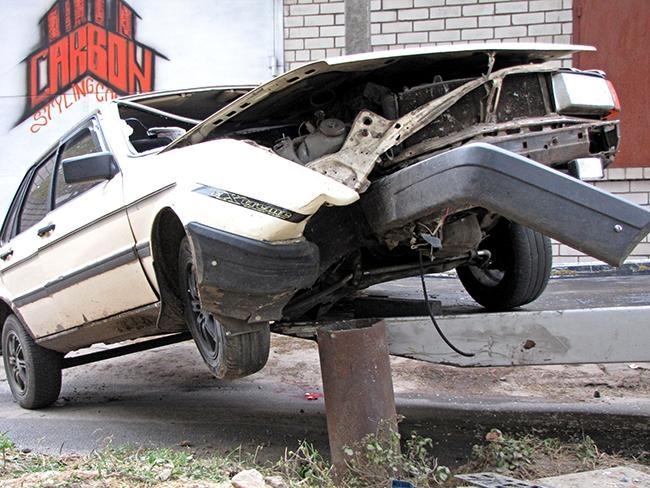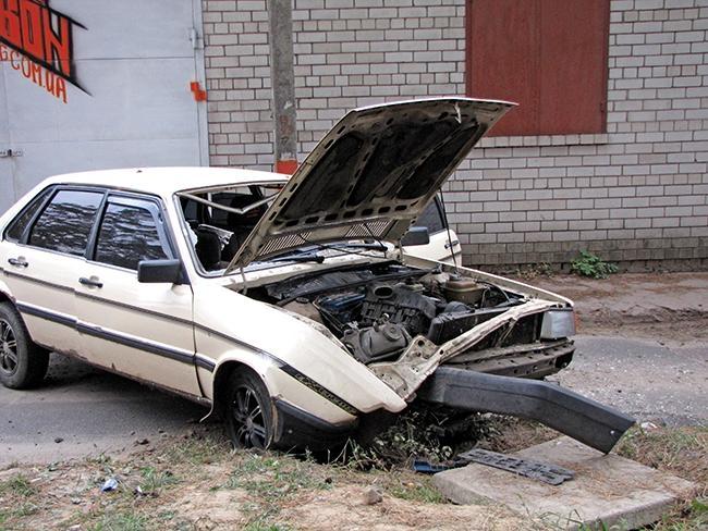 Возле мастерской по нанесению виниловых автопленок, расположенной на этой улице, вкопан ограничительный металлический столбик. Audi 80, двигавшаяся в объезд по улице Грибоедова, неудачно сманеврировав на узкой дороге, и подскочив на возвышенности, со всего маха «наделась» на этот придорожный столб.