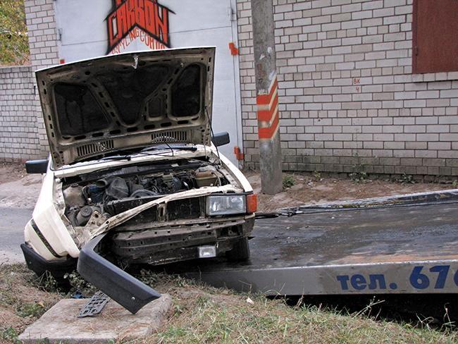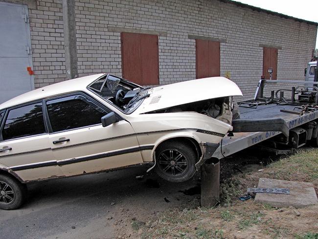 Машину с сильными повреждениями забрал эвакуатор, а столб даже не согнулся.