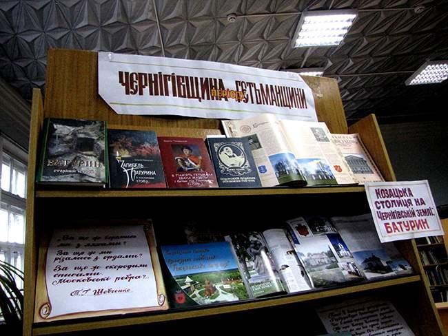 Також в бібліотеці була розгорнута книжкова виставка «Чернігівщина періоду Гетьманщини», яку по закінченню історичних читань могли переглянути всі охочі.