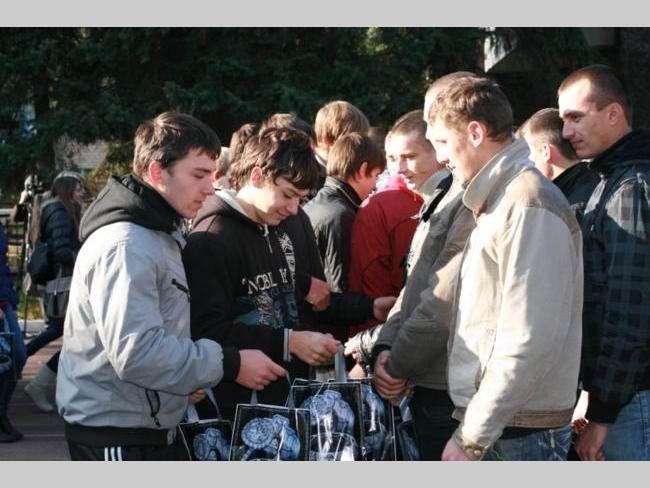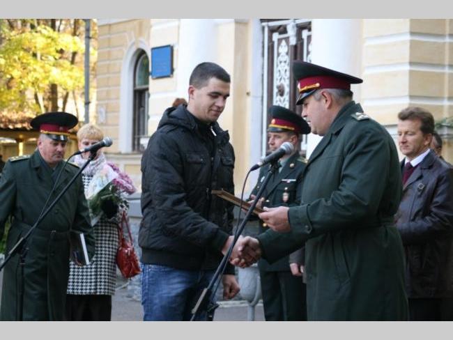 Учні загальноосвітньої школи №3 та вихованці військово-патріотичного клубу імені капітана Востришева «Щит княжого міста», який очолює учасник ліквідації аварії на Чорнобильській АЕС, педагог-організатор Анатолій Самсоненко, вручили призовникам подарунки від Чернігівської обласної державної адміністрації.