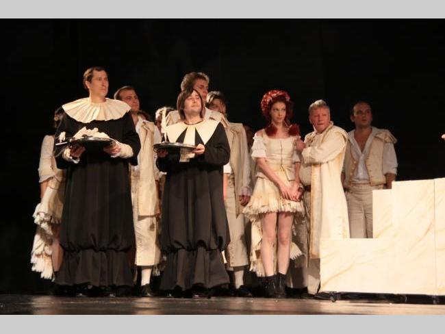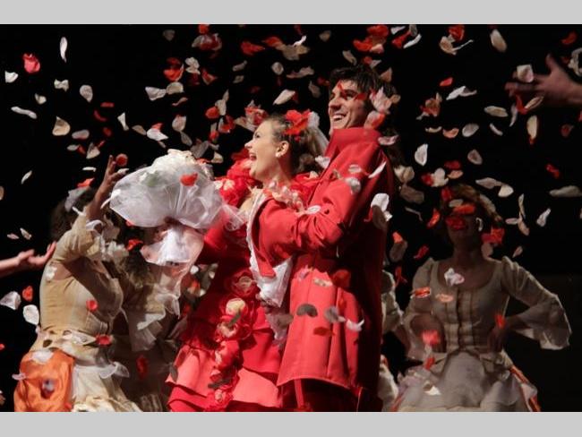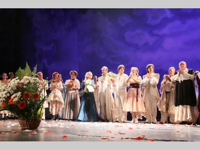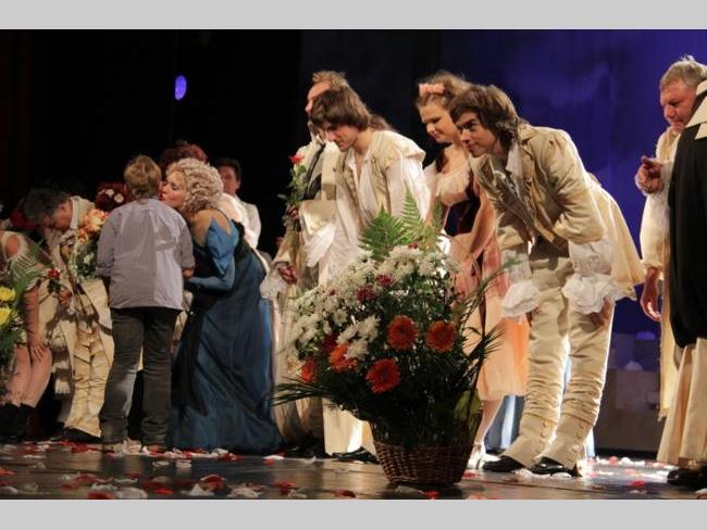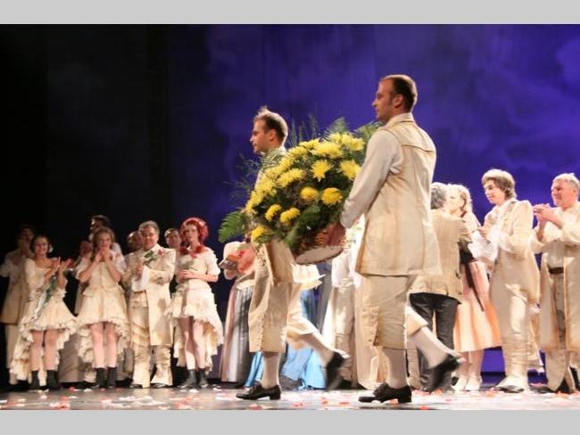 АКТУАЛЬНО Великою грандіозною прем’єрою розпочав 18-го жовтня свій 86-ий сезон Чернігівський обласний академічний український музично-драматичний театр ім. Т.Г. Шевченка. «Безумний день, або Весілля Фігаро», таку назву має нова вистава талановитого режисера-художнього керівника театру Андрія Бакірова. Біля сорока артистів драми, балету та оркестру розіграли на театральній сцені дійство, яке не залишило байдужим жодного з присутніх у залі. Прекрасні костюми та декорації гармонійно поєднані з музичним забарвленням та чудовим світловим оформленням створили для глядачів атмосферу присутності . Досвідчені актори разом із перспективною молоддю створили неперевершене відчуття часів Фігаро. Вся вистава пронизана любов’ю. З любов’ю створена, розіграна та донесена до глядача. Вщерть заповнений зал стоячи аплодував акторам та довго не відпускав їх зі сцени, нагородивши великою кількістю посмішок, добрих привітань та квітів…