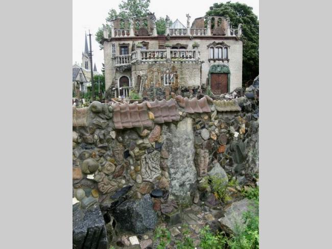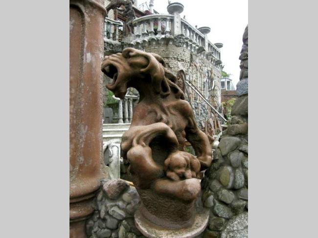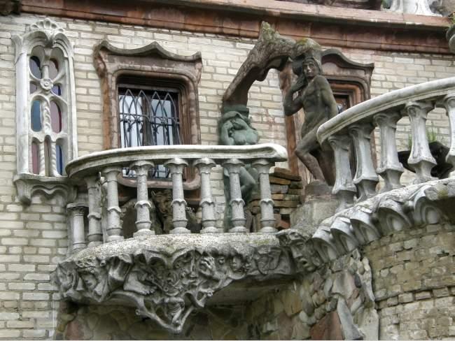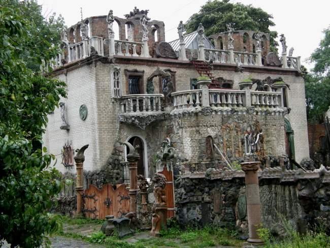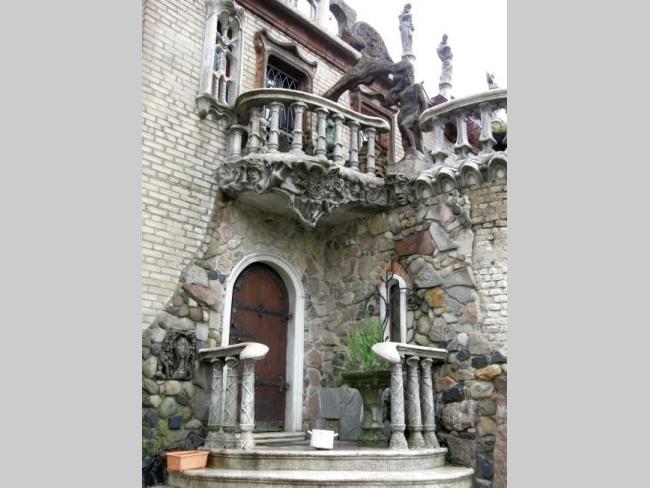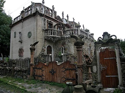 От замка наш путь лежал в сторону еще одного замка, только современного. Пройдя мимо кафедрального костела Петра и Павла и неоготической лютеранской кирхи, мы оказались на самом берегу реки Стыр, где нас ждал ОН – сказочный фантастический замок, он же Дом скульптора Николая Голованя. Несмотря на то, что строительство роскошной эклектичной резиденции ведется уже почти три десятилетия, сам автор скульптурного рая утверждает, что дом готов пока только процентов на 80. В этом каменном саду есть все: «скорченные артритом барокко» фигуры святых на крыше, хмурые средневековые горгулии на водостоках, античные бегуны-олимпийцы, скульптуры ангелов, животных – как реальных, так и сказочных, всевозможные барельефы, в том числе и с изображением членов семьи скульптора. Смешной лев охраняет вход во двор «замка», который весь заставлен находящимися еще в работе фигурами. Сам дом довольно прост по архитектуре и представляет собой прямоугольную двухэтажную коробку из белого кирпича. Но вот оконные наличники в стиле модерн, баллюстрады и статуи превращают его в самый что ни на есть живой организм. Еще более интересна каменная ограда дома и все что находится рядом с ней. Словами об этом не рассказать – ЭТО надо видеть!!!