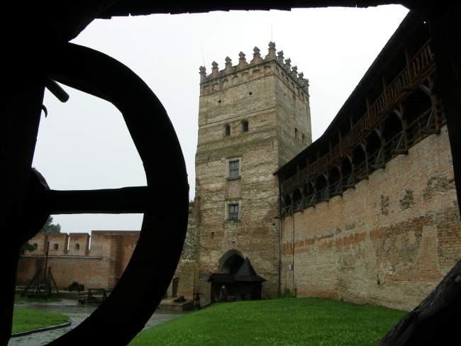 Прибыв в Луцк, мы первым делом отправились осматривать главную достопримечательность города – Луцкий замок, или Замок Любарта, как его еще называют. Внешний вид этого замка знаком всем украинцам (особенно тем, кто побогаче) по 200-гривенной купюре: на ней изображена Въездная башня замка. Помимо этой башни, сохранилось еще две – Владычная и Стыровая. Тем же древним зданиям, которые находились внутри, на замковом дворе, повезло меньше. Только остатки фундаментов подсказывают, где были дворец Великого литовского князя Витовта ХІV столетия и церковь Иоанна Богослова ХІІ века. Рядом же с традиционными для таких мест пушками, таранами и баллистами мы увидели огромные, чуть ли не в человеческий рост, шахматные фигуры! Они, судя по всему, должны напоминать том, что при археологических раскопках на территории замка были найдены резные шахматные фигурки из слоновой кости – видимо, обитатели Луцкой твердыни не только воевали, но и интеллектуально отдыхали!