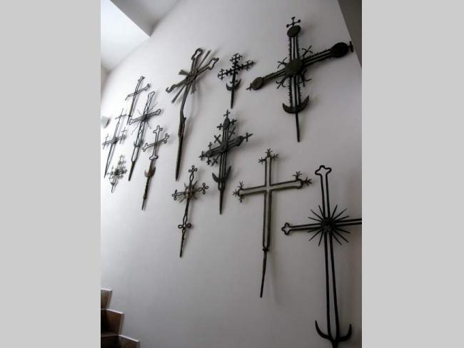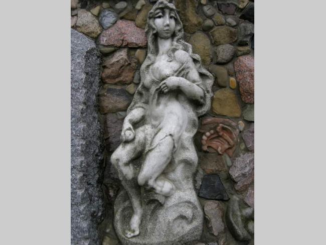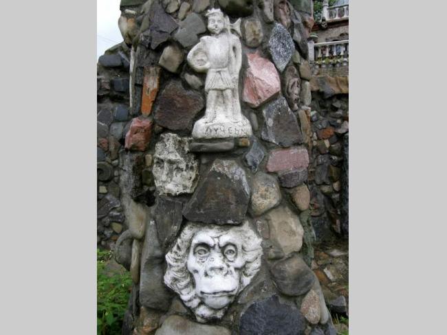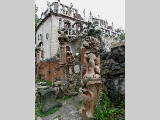 Любуясь этим шедевром, трудно себе представить, что в таком доме могут жить люди! Построен он явно «не по-людски», и скорее походит на обиталище каких-нибудь троллей, гномов или мишек Гамми. Но вот открылась дверь, и на пороге появился сам хозяин – скульптор Николай Головань. Улыбнулся, поздоровался, разрешил фотографировать, и вновь ушел работать - создавать волшебство. Хотя на волшебника совсем не похож. А просто похож на человека, который все свое свободное время и средства тратит на творчество, на создание красоты, которая радует не только его самого и его семью, но и всех вокруг. Этим он мне напомнил закарпатского художника Й.Бартоша, который взял полуразрушенный замок Сент-Миклош в оренду на 49 лет, чтобы создать там культурный центр. На реставрацию замка средства им собираются как от продажи собственных картин, устройства в замке вернисажей, так и от экскурсий и пожертвований. Вот такие они, нынешние подвижники – один строит замок, другой замок восстанавливает. И ведь замки эти далеко не воздушные! Преклоняюсь перед такими людьми!