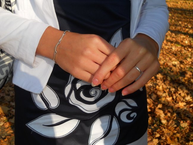 Серьги, серебряный браслет и колечко – подарок от парня Романа.