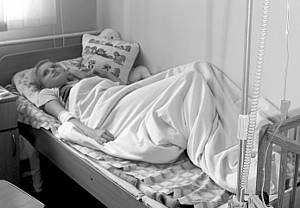 Ребенок поступил с жалобами на сильные боли в животе, боли в левом плече в результате падения. Состояние девочки на момент поступления было средней тяжести. Клинически и с помощью УЗИ у нее был диагностирован разрыв селезенки, который подтвержден впоследствии клиническими данными и данными, которые мы получили при заборах и повторных анализах крови. При такой патологии не всегда, но возможно консервативное лечение в надежде на то, что кровотечение прекратится и орган будет сохранен, – что мы в принципе и стали делать. Все эти дни состояние девочки было среднетяжелое. В течение нескольких последних дней с явным улучшением.