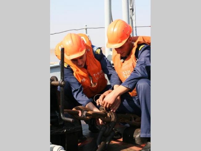 - Перш за все, - розповів командир навчальної роти навчального курсу підготовки військовослужбовців за контрактом навчального центру ВМС ЗСУ капітан 3-го рангу Сергій Мойсієнко, - на морі повинні служити здорові юнаки. Ми ретельно вивчаємо особову справу кожного кандидата, оцінюємо його психологічний та моральний стан. І тільки тоді ми вирішуємо чи придатний юнак для служби на бойових кораблях Військово-морських