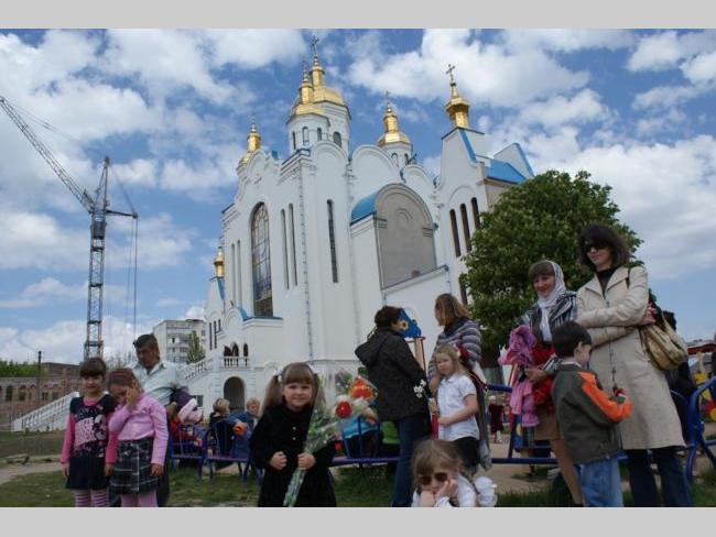 Уже одиннадцатый год в подряд на площади Героев Сталинграда ведется грандиозное строительство храма-центра. Его центральный собор достигает в высоту 52 метра. - Множество разных проектов претендовали на это место: дворец культуры, парк отдыха, торговый центр, - рассказывает протоирей Петр (Казновецкий), настоятель храма. Отец Петр, будучи священником Спасо-Преображенского собора, затем - Свято-Феодосиевской храма, мечтал соорудить в Чернигове храмовый комплекс. Положившись на волю Господа, решил добиться разрешения на строительство. Понадобилось время, дабы эта идея пришлась по душе местным чиновникам. Летом 2000 года началось строительство центра. Маленький храм рисковал затеряться в тени серых панельный высоток, поэтому было решено соорудить величественную постройку, которая смогла бы подняться над массивом и способствовать росту духовности его жителей. Автором проекта стал черниговский архитектор Виктор Устинов.