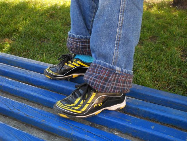 Любимая вещь гардероба – обувь. Как раз сегодня на нем любимые кроссовки.