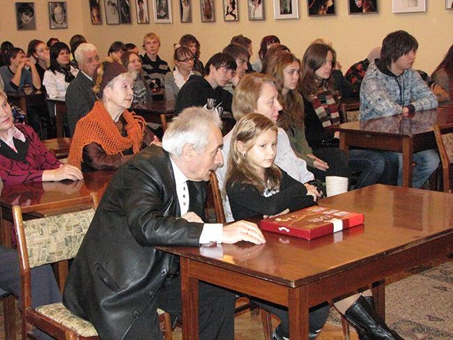 Поздравить фотографа с юбилеем пришли коллеги, родственники, друзья, а также студенты высшего профессионального училища бытового обслуживания, которые только учатся искусству фотографии.