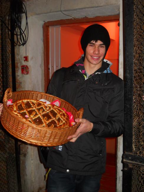 Роман Велентей, игрок команды «Стоп»: я в команде уже 3,5 года. КВНное движение в городе есть и оно очень актуально. Есть много команд и в школах, и в ВУЗах. Мы сегодня делаем два вида выступления – шутки и большой пирог для всех в подарок.