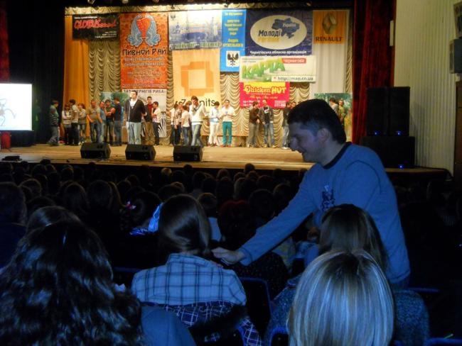 Городской Дворец культуры едва вместил всех желающих посмотреть лучшие номера самых популярных на сегодняшний день команд Чернигова и области. Названия которых, уже, практически, бренды, которыми город не один год вполне заслуженно гордится: «7*Я», «Сборная капитанов», «Студкафе», «С потолка», «Конфетка» - ЧНПУ и «Люди ЧЕ». В эту компанию уверенно врываются, по-хорошему, нахальные дебютанты открытой лиги – команда «Стоп» из школы №13.