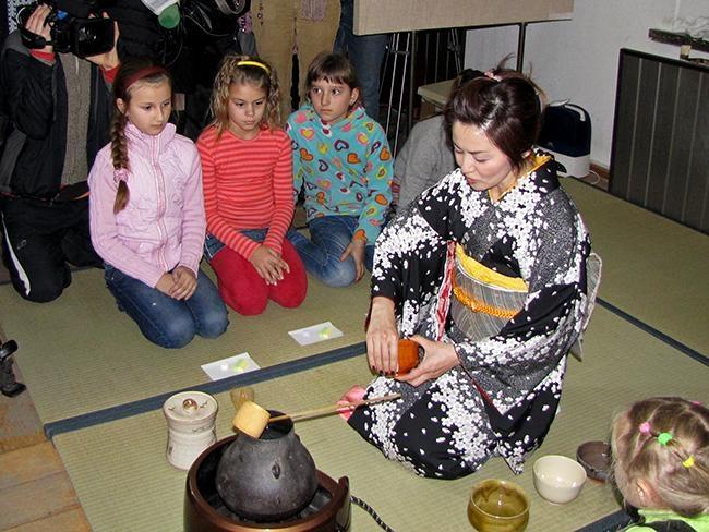 Також на зустрічі, Міяшіро Еміко продемонструвала проведення чайної церемонії.