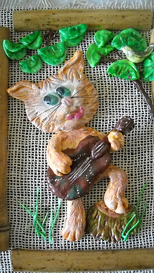 – Тесто нужно вымешивать долго, пока оно не станет как пластилин, – рассказывает Ольга, – а в духовке сушу его на маленьком огне около четырех часов. Потом все это покрывается различными красками, лаком и приклеивается к полотну.