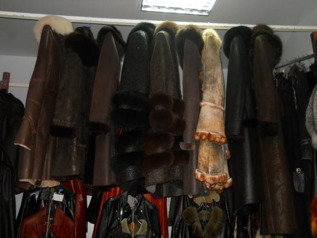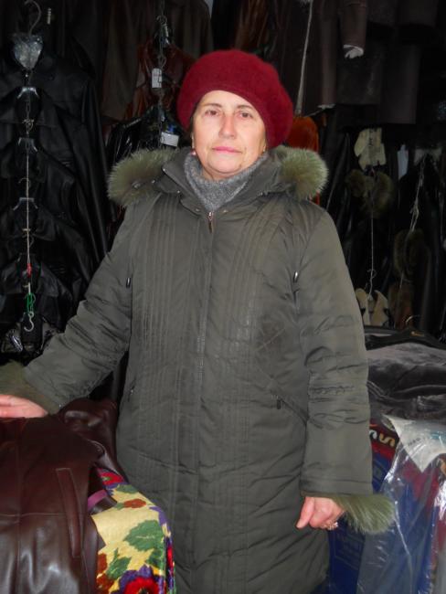 Лидия Дмитриевна, хозяйка бутика № 224 на «Ниве»: кожаные куртки и дубленки у нас в продаже круглый год. Сегодня есть 7 моделей курток. Дубленок – 15 моделей женских и 5 мужских. Все от 44-го до 60-го размера. Торговля в последнее время слабая. Интересуются товаром, в основном, женщины.