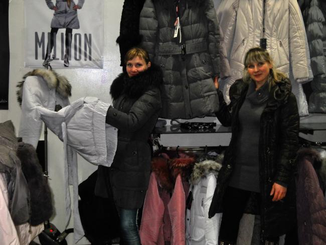 Людмила и Янина, продавцы-консультанты магазина «FASHION», бутик № 103: мы только что купили себе по пуховику фирмы «Томи» в нашем магазине. Один стоит 1500 грн., другой 1250. Выбор в нашем магазине очень большой – более 15 моделей курток и пуховиков. Расцветок и оттенков больше 20. Производители – Китай, Турция и Харьков. Сегодня пользуется спросом удлиненная модель и харьковское производство. Магазин посещают и взрослые и молодежь. У нас всегда есть 5% скидки, только надо не стесняться попросить. Цены от 800 до 1850 грн. Есть и красивые искусственные шубки из каракуля – от 950 грн.