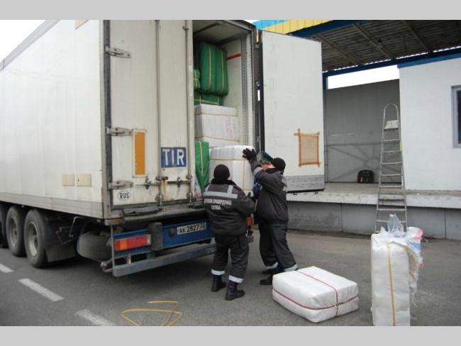 Проте, під час проведення огляду напівпричепа виявилось, що замість задекларованого вантажу у фурі знаходяться тюки з трикотажними виробами та коробки з парфумерною продукцією.