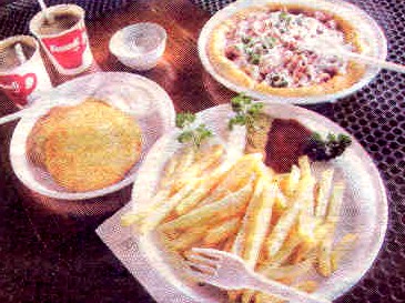 Картошка-фри, пицца, драники и кофе на автовокзале