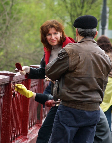 Мер взял в руки метлу, его замы кисточки и грабли и в результате совместных усилий был покрашен Красный мост и расчищена местность возле городского ЗАГСа.