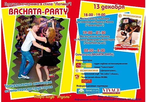 22-00 - 2-00 - бачата-пати (звучит бачата, сальса, зук, меренге, реггетон!)
