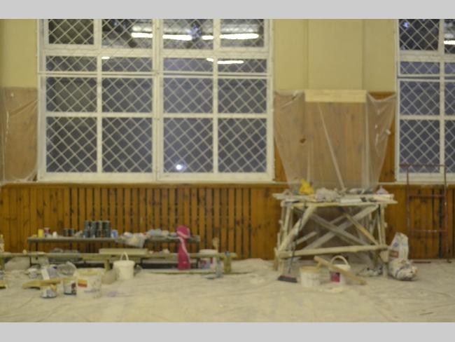 28 октября мы публиковали материал о ремонте на стадионе им.Ю.Гагарина. Спортивный комплекс на данный момент находится уже не на городском балансе, а под патронатом государственного Олимпийского комитета, о чем свидетельствует новая вывеска на входе. В субботу, 3 декабря нам удалось застать только одну строительную бригаду, которая занимается облагораживанием спортзала. Всего же ремонтом занимается несколько бригад.