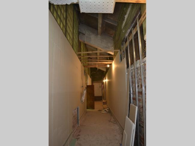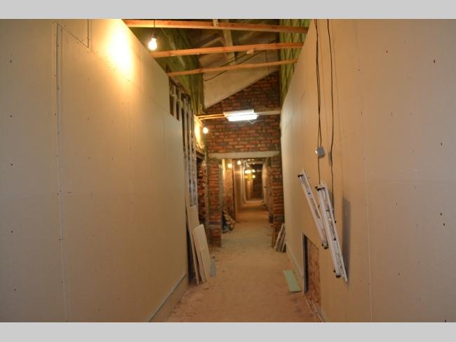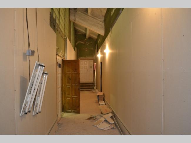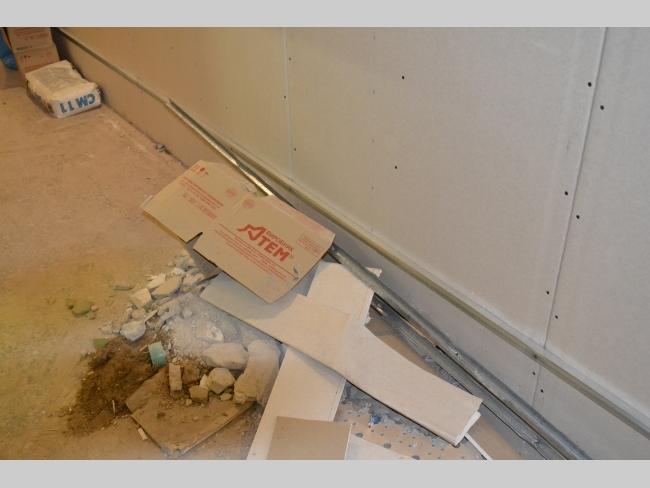 В коридорах уже начали класть плитку. стены будут обшивать гипсокартонном – на входе мы заметили несколько десятков листов этих стройматериалов.