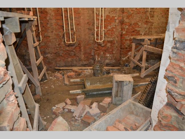 Накануне происходил демонтаж душевых и раздевалок, поэтому в этих подсобных помещениях сейчас полный разгром. Строительного мусора насобиралось на три камаза. Пока он лежит на территории стадиона, с понедельника его вывезут.