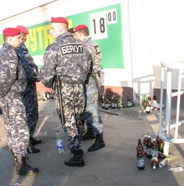 Після гри ми з друзями вибрали напрямком руху найближчий гастроном. Звісно, що настрій після перемоги у всіх був якнайкращий, ми жартували і (о! який жах) голосно сміялися. Нашу четвірку обігнало штук 15 «беркутів», один з яких раптом розвернувся, підійшов впритул до нас вичавив крізь зуби наказ: «нє смєяться громко!».На наші коректні і ввічливі запитання: «ми щось порушуємо?» і «а тепер заборонено сміятися на вулиці?» це … (не буду вживати слово «бидло», аби нікого не образити) зрозуміло, що присікатися до нас не вдасться і помахати палицею сьогодні не вийде. Єдине що ми почули у відповідь: «людям вокруг неприятно». Пояснень від чого саме їм нібито неприємно не було. Кремезний чоловік у формі розчаровано пішов наздоганяти своїх.