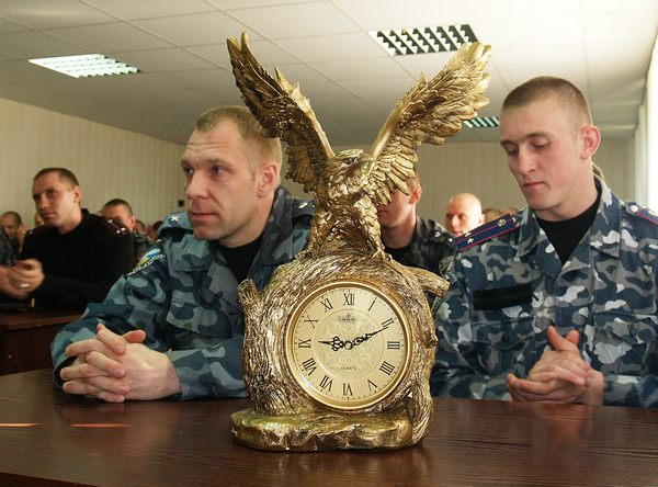 Александр Удовиченко, прапорщик милиции, за успехи в службе награжден ценным подарком - часами с «золотым беркутом»