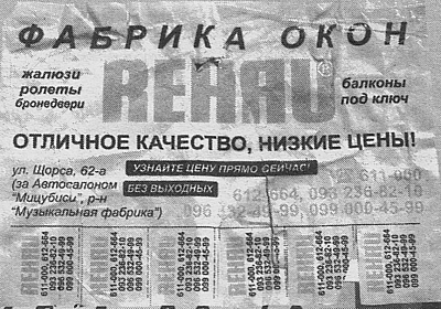 — Я тоже обратилась по объявлению, но еще раньше — 22 июня, — присоединяется к разговору 59-летняя Татьяна Крутько. — Хотела заменить небольшое окно, так все фирмы просили за него 1700-1800 гривен. Конечно, хотелось найти подешевле. «Фабрика окон» пообещала сделать за 1300, да еще и скидку как пенсионерке. Вот я и согласилась. На следующий день пришел мастер. Когда он заговорил, я поняла, что это тот же человек, с которым я общалась по телефону. Удивилась: если он отвечает на звонки, да еще и является начальником фирмы, то почему же и мерки снимает сам? Но ему ничего не сказала. Он произвел необходимые замеры и предупредил, что в их фирме предоплата составляет 80%. Я напомнила о скидке. Он спросил: «А какую скидку вы хотите?» — «Да хоть 50 гривен, чтобы до пенсии дотянуть». Отдала ему 1100 гривен. Деньги он взял, а квитанции никакой не выдал. Тогда я попросила: «Так вы хоть на договоре напишите, сколько взяли, а то как я докажу, что почти всю сумму заплатила?» - «А вы что, бухгалтер?» — «Жизнь каждого заставит быть бухгалтером», — ответила. Он, хотя и нехотя, написал на договоре, что стоимость заказа 1250 гривен, а предоплата — 1100. В документах был указан срок выполнения — 7 дней, но мастер предупредил: компания переезжает в другое место, поэтому окно будет не раньше чем через две недели. Прошло две недели, я позвонила опять — сказали, что окно будет немного позже, и назначили день. В тот день я опять позвонила, и дату установки окна перенесли еще на два дня, потом еще на два. Я знаю, что сразу должна была бы обратиться в милицию или Управление по делам защиты прав потребителей, но в соседнем подъезде нашего дома молодая семья тоже заказала окна, правда в другой фирме, и они ждали аж три месяца. Вот и я решила подождать. Дождалась, — вздыхает Татьяна Михайловна - Ни окна, ни денег.